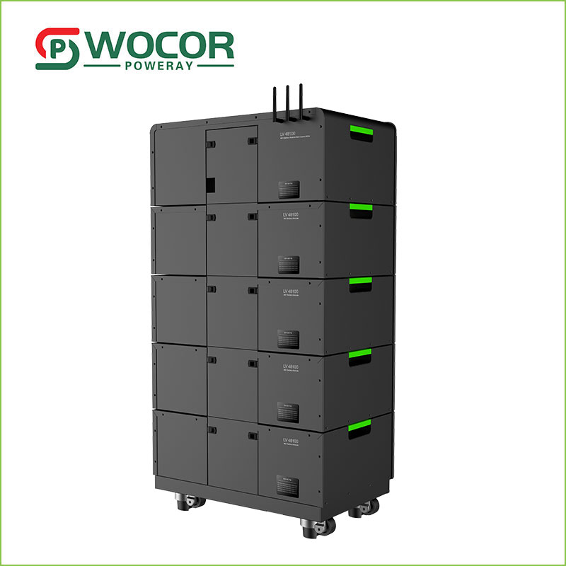 Storan tenaga fotovoltaik rumah voltan rendah WOCOR dengan 48V, 100A. Storan tenaga fotovoltaik rumah voltan rendah 220V kami boleh berskala daripada 5.12 kWj hingga 81.92 kWj, ini bermakna anda boleh melanjutkan pada bila-bila masa dan dengan mudah menyesuaikan diri dengan keperluan baharu. Dan kami menggunakan bateri Lithium Iron Phosphate (LFP) Bebas Kobalt dalam storan tenaga fotovoltaik rumah voltan rendah WOCOR untuk memastikan keselamatan, kitaran hayat dan kuasa maksimum.